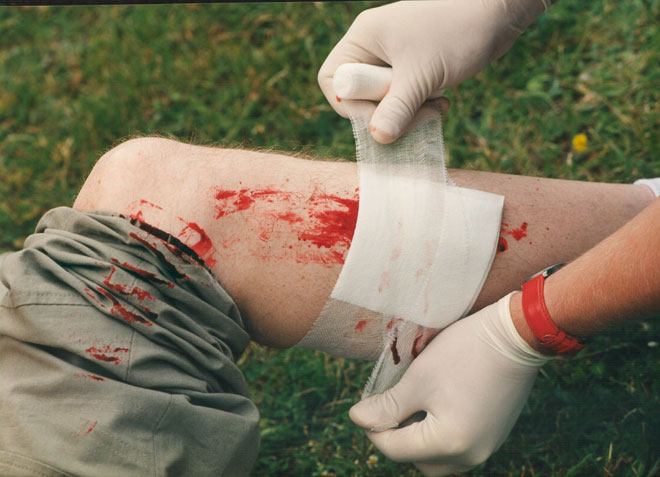 Bei einer starken Blutung, müssen Sie einen Druckverband anlegen: